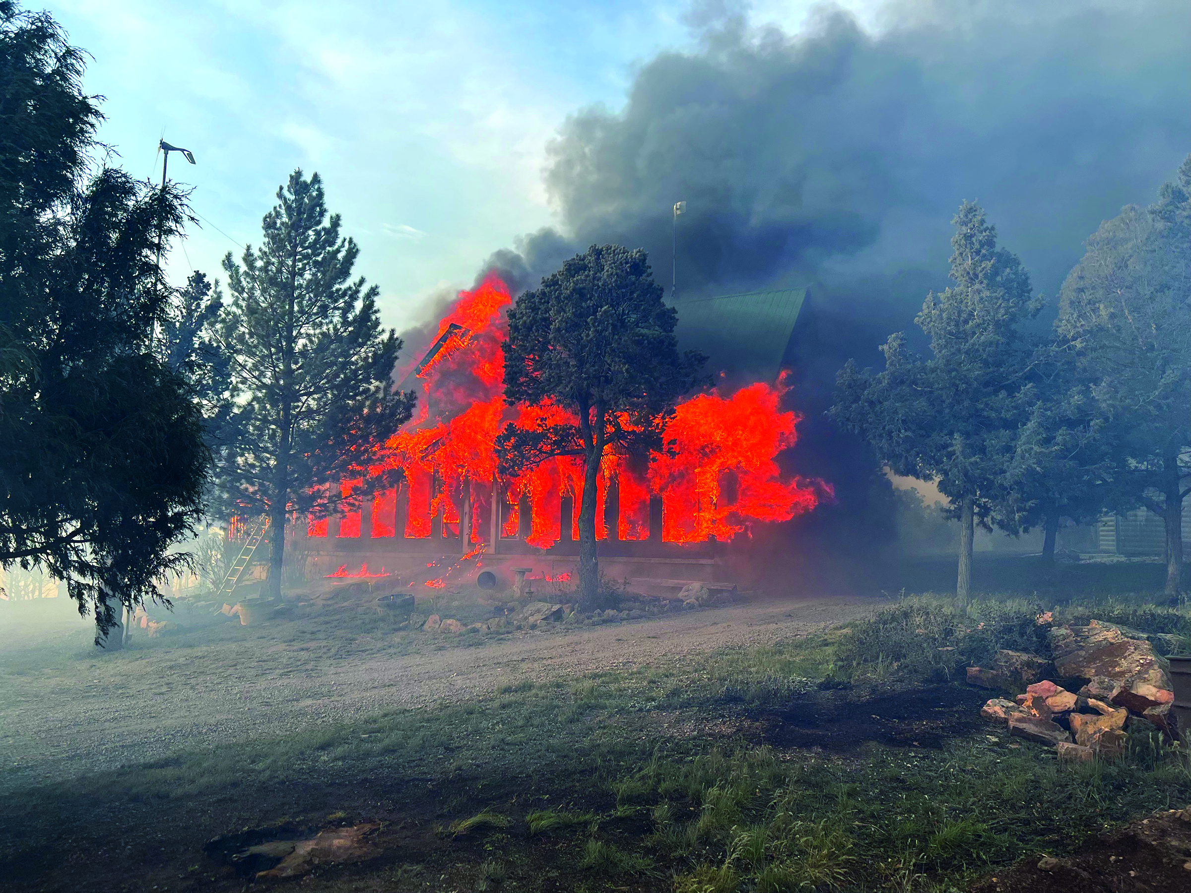 This photo was taken of the Stauffers’ home on May 19, 2022, the day a prescribed burn set by the U.S. Forest Service turned into the Simms Fire. The Stauffers escaped with their dogs and a few possessions.